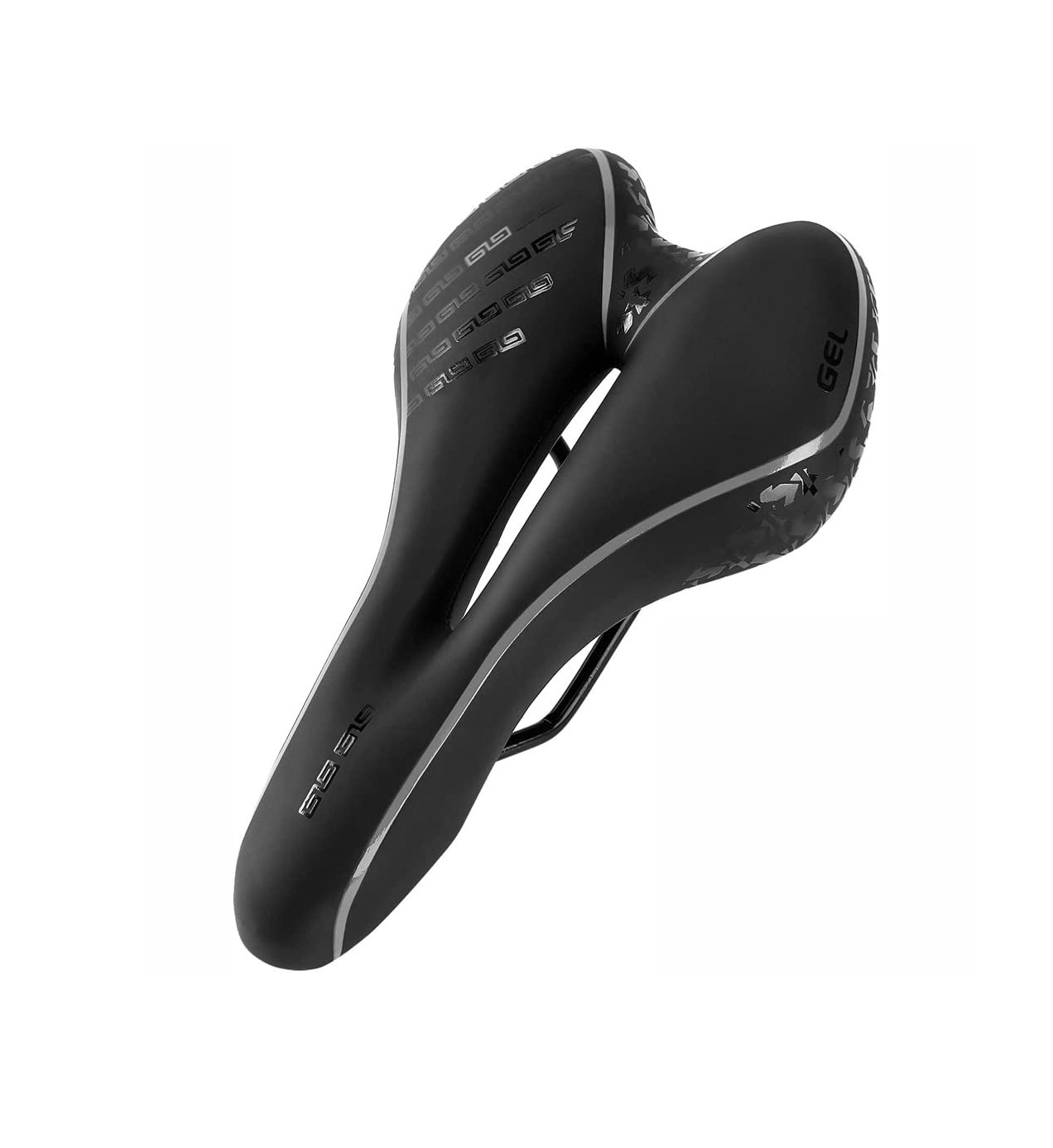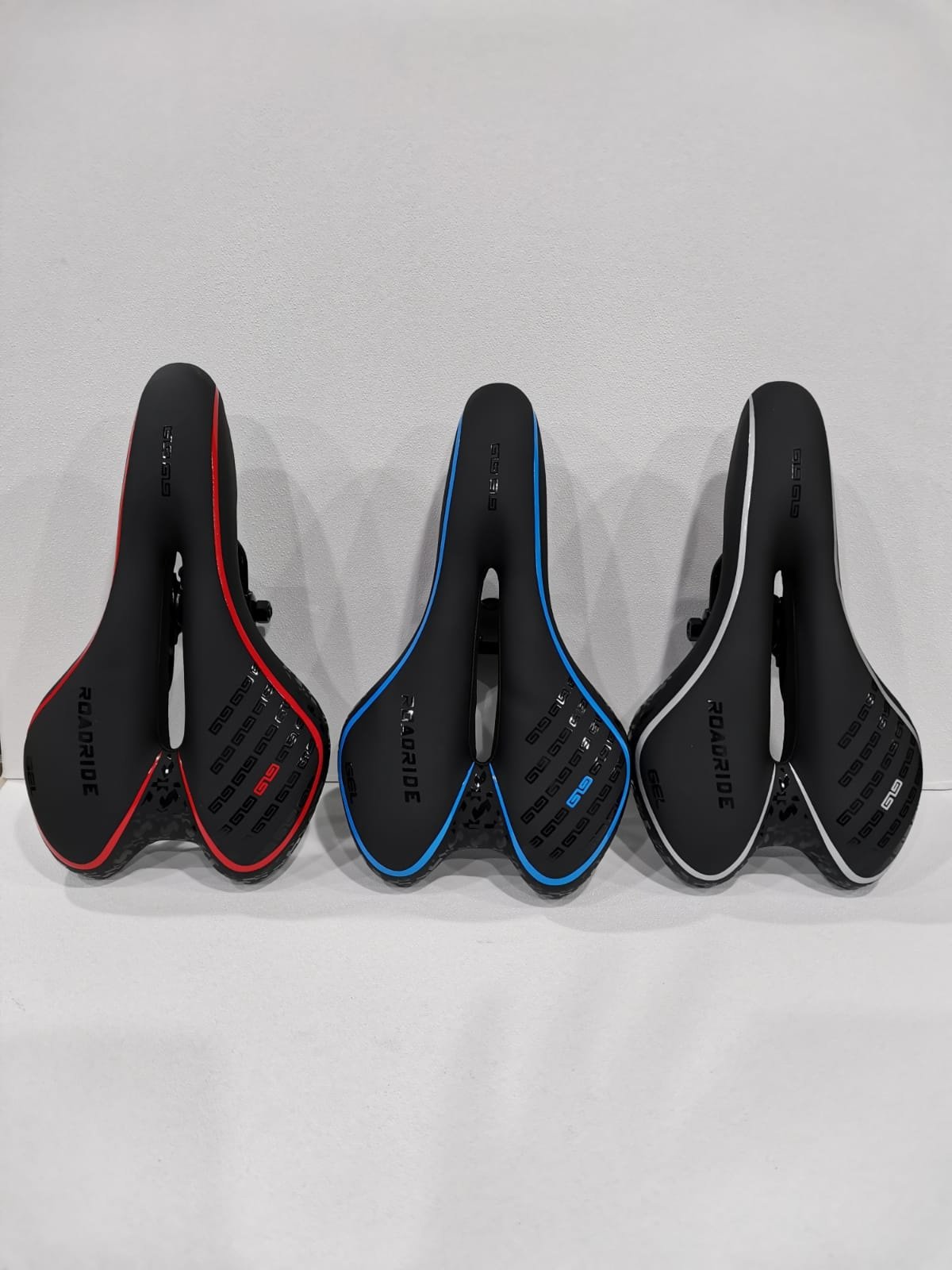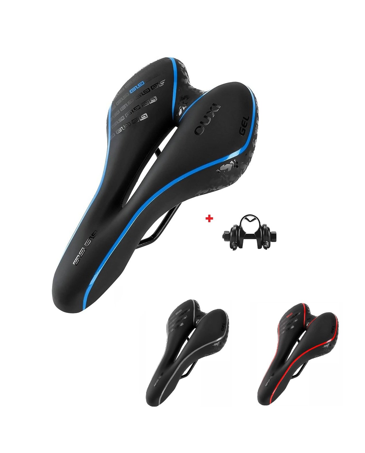 Asiento de Gel MTB Negro/Rojo/Azul con Diseños Antiprostatico.