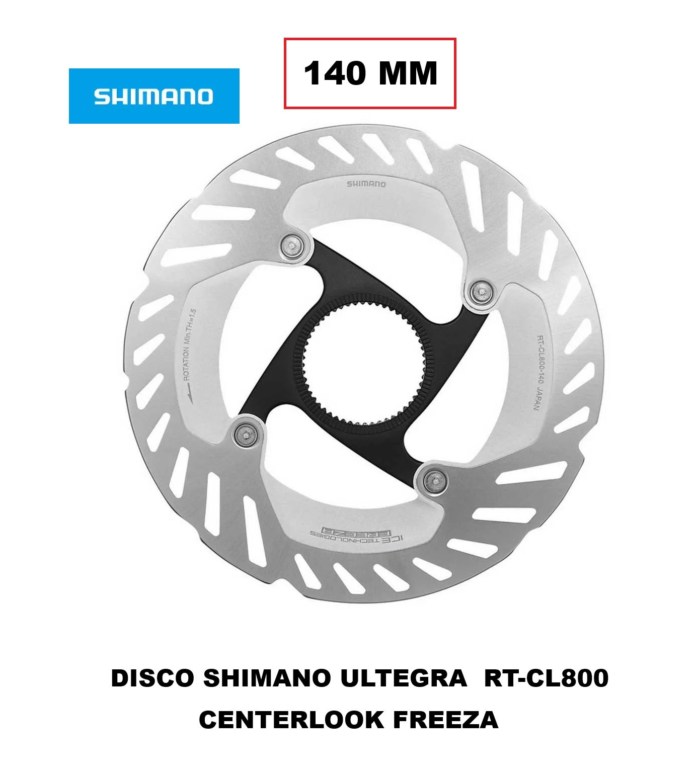 Disco de Freno Shimano ULTEGRA/XT RT-CL800 140mm Freeza Centerlook Ajuste Tapa Interna OEM sin Caja