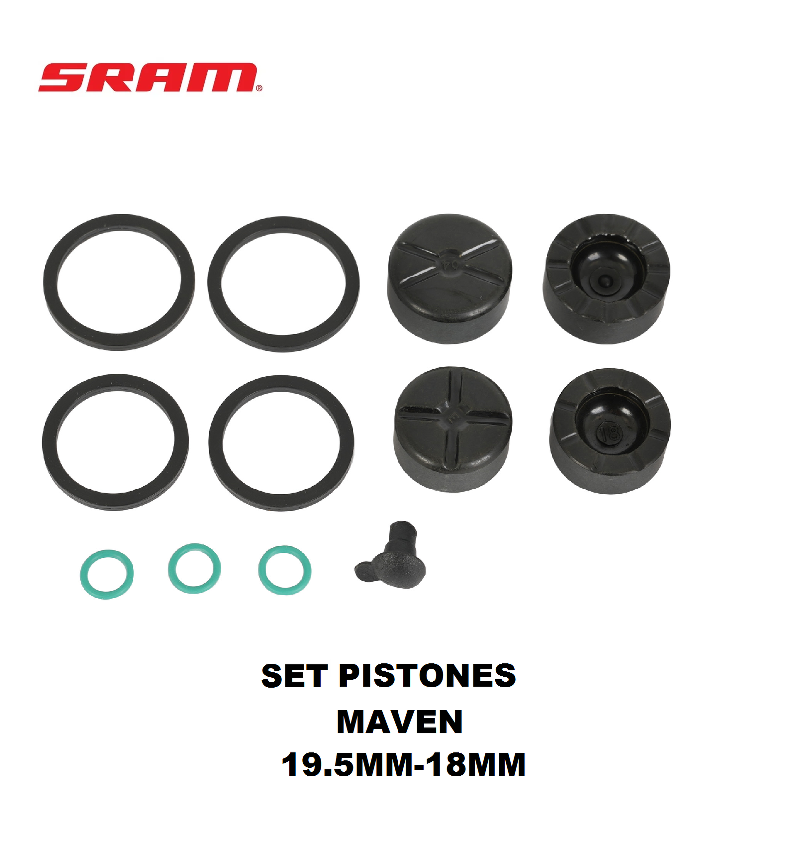 Este kit de pistones y juntas sirve como recambio de las piezas interiores de tu caliper de freno SRAM MAVEN (ULT/SLV/BRZ A1) (2024+)
