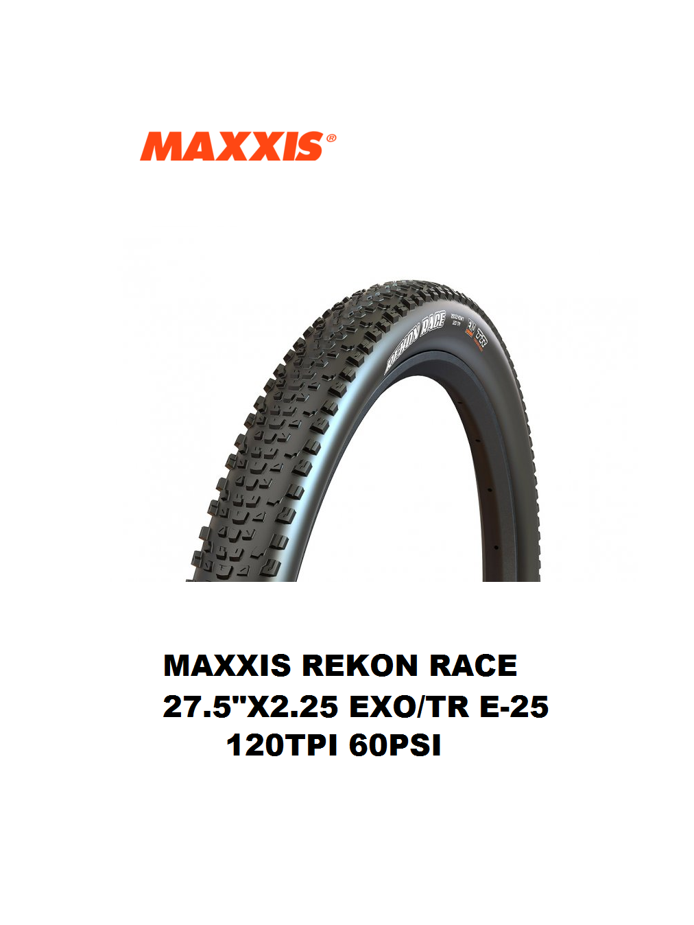 Llanta Maxxis MTB Rekon Race 27.5″×2.25 EXO/TR E-25 120TPI 60PSI MAX.