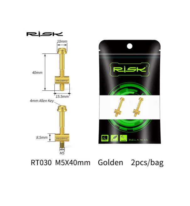 Tornillos de Titanio Risk M5X40 para Ajuste de Tija de Carbono Gold.